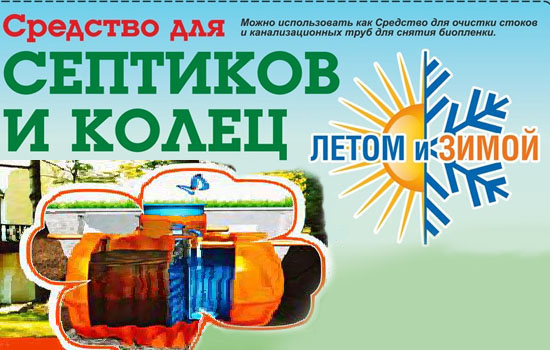 Зимнее и летнее всесезонное средство для очистки септика содержит в составе комплекс биологически активных добавок.