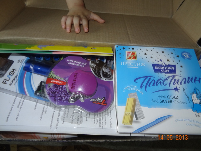 Общий вид посылочки и уже ручонки за пластилином направились.