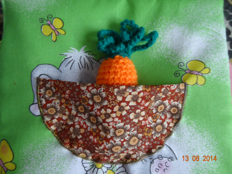 Зайка, на этот раз с вязаной морковкой.