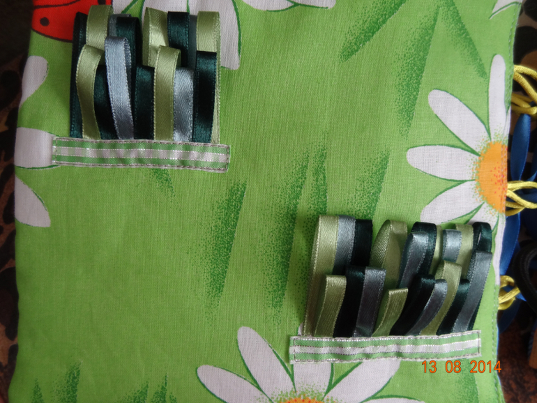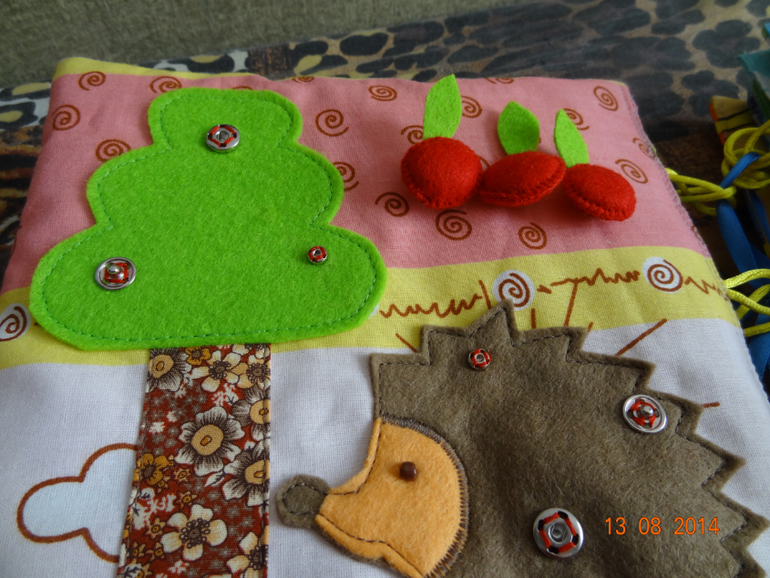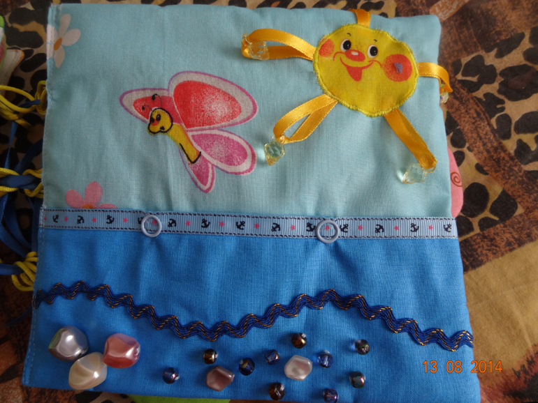 Морская страничка. Бусины различные на ощупь (пришиты на совесть, ведь все для малыша), рыбки из фетра, на лучиках солнца бусины.