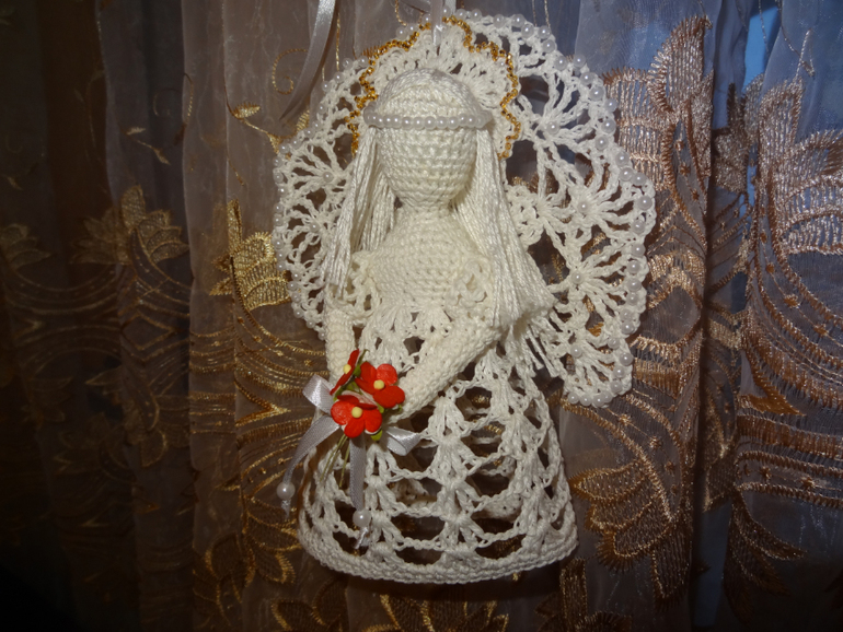 В Белгороде установили елку в Епархии и для этого был объявлен конкурс, нужно было изготовить игрушку, связанную с Рождеством. У нас родился связался вот такой Ангел: нитки нарцисс, крючок №1.