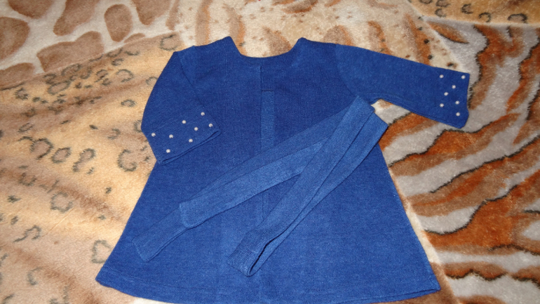кардиган из теплого трикотажа на девочку от двух до четырех лет. Рукав три четверти, низ расшит бусинами /запасные прилагаются, под пояс.