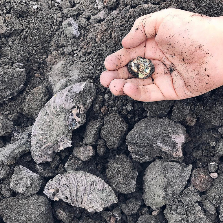 Мы были палеонтологами! Мы искали останки аммонитов, белемнитов, брахиоподов, ихтиозавтров на территории древнего моря в карьере, где подняли чёрную глину юрского периода.