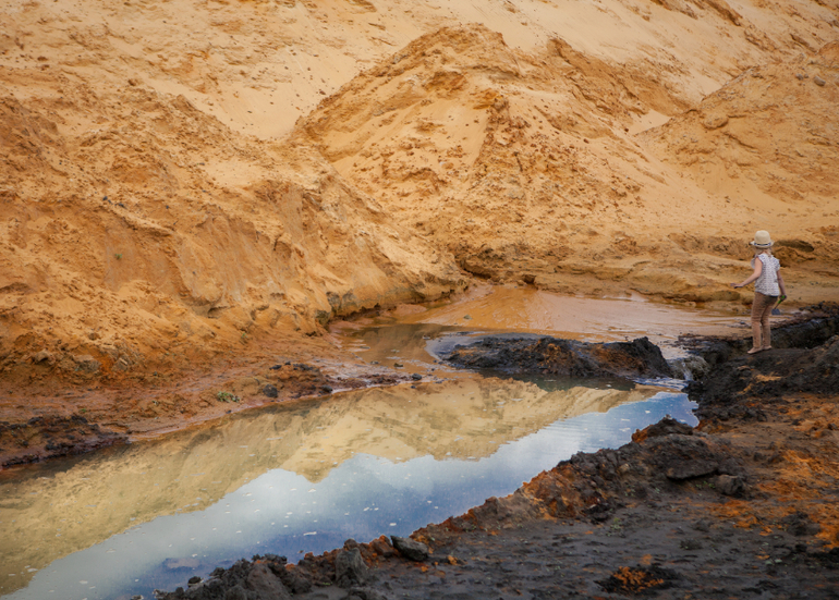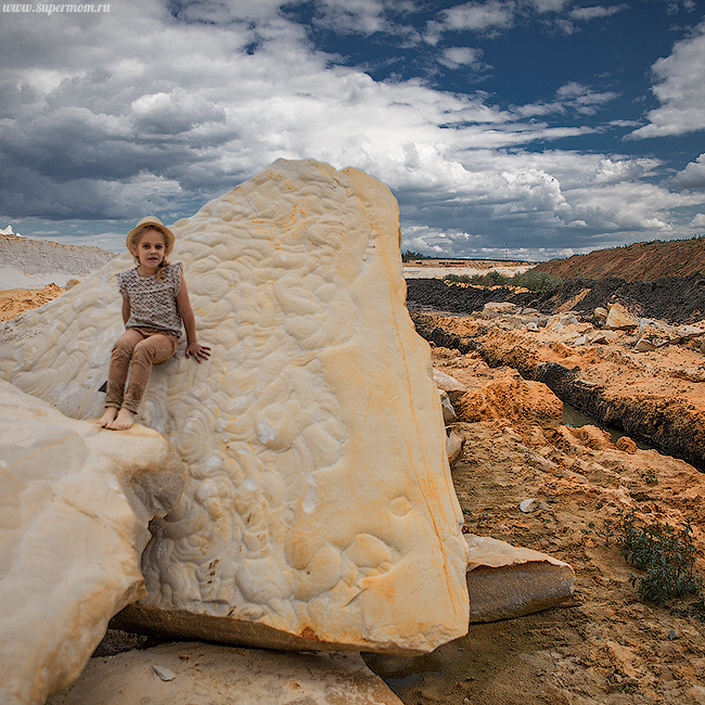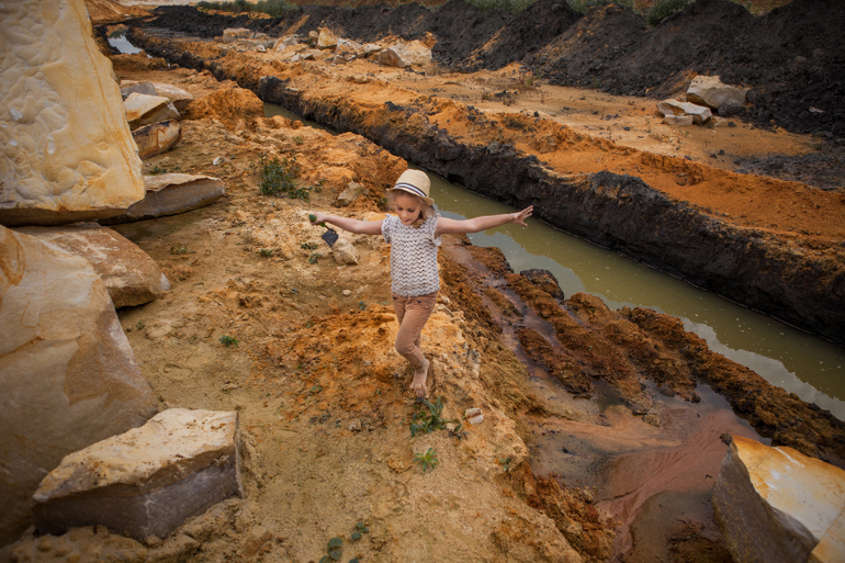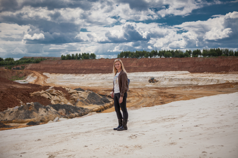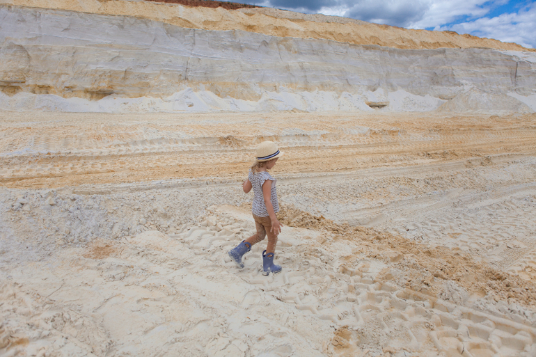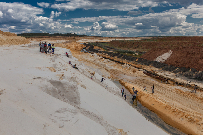 Карьер в Еганово, на который мы ездили, на самом деле действующий. Там добывают кварцевый песок для производства стекла, мельчайший и очень чистый. Мы добирались до черной глины юрского периода, которую подняли в тот момент, когда встал вопрос о том, что надо делать дренаж для грунтовых вод. Пока преодолевали песчаник, дети вдоволь накатались с горок на попе, возились в песке, и это было невероятно здорово!