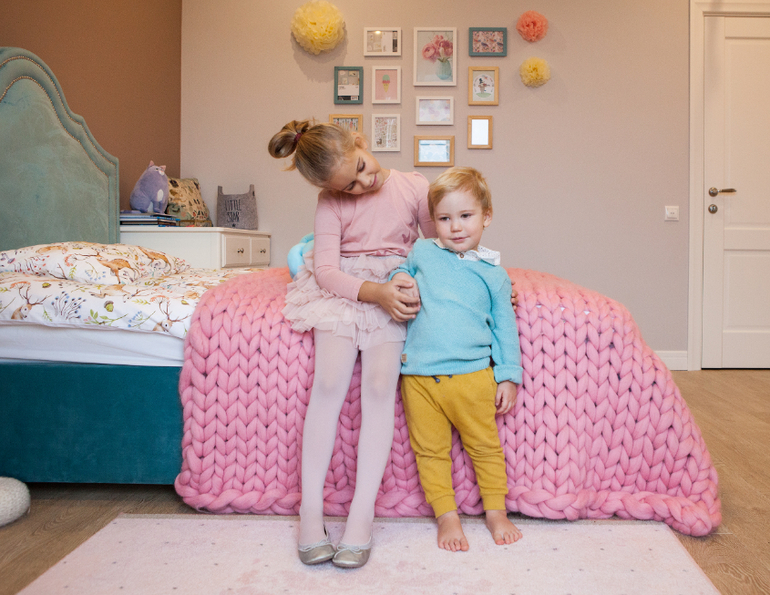 Иногда они хотят спать здесь вместе, потому что у Толика пока всё еще нет своей спальни. Он кочует))