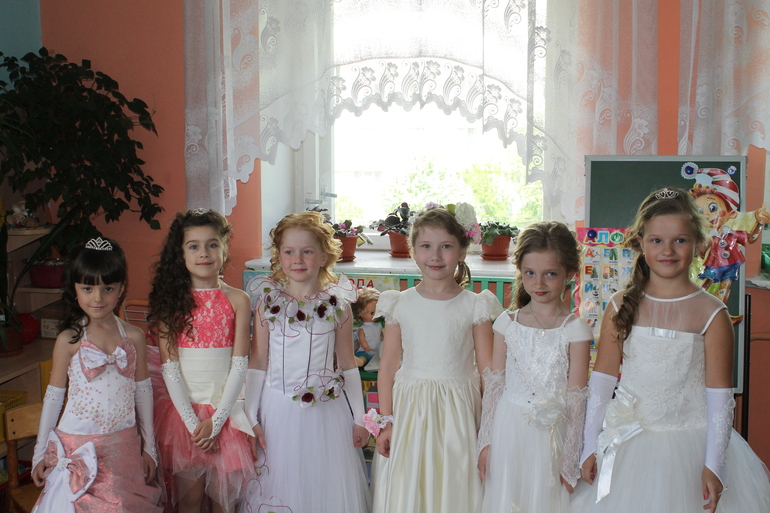 Все девочки были принцессами!!! На головах у многих были короны...Только у моей-веночек...Вот так и выделились...Правда, нашу причёску окрестили клумбой!