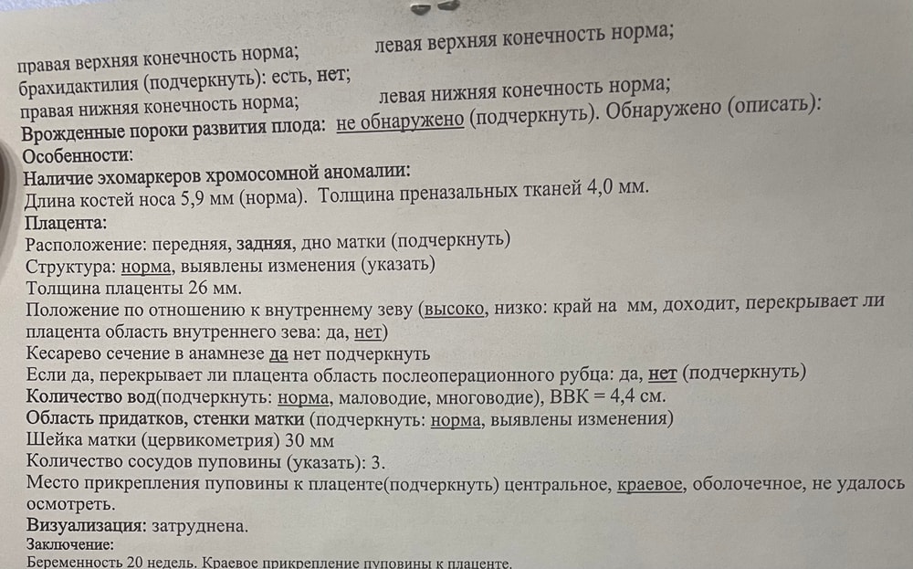 В целом все в норме, но есть в заключении «краевое прикрепление пуповины к плаценте». Я так поняла это особенность, но требующая лишь наблюдений, мой гинеколог никак не прокомментировала это.