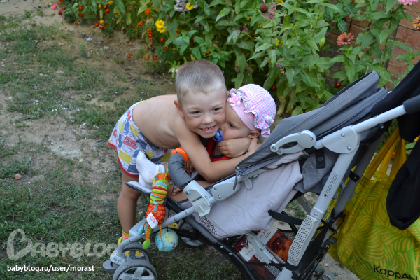 Маша - большая умница, полет на самолете туда и обратно перенесла отлично, даже не пикнула ни разу. В Анапе тоже, несмотря на адовую жару поначалу, не доставляла хлопот - хорошо кушала, много спала (дважды днем и всю ночь), спококйно вела себя в коляске во время многочисленных прогулок. Единственное - пристрастилась к соске, но это поправимо. Стала еще более общительной, стала больше понимать, в целом стала намного интереснее - новые жесты и звуки. Ходить, вопреки моим ожиданиям, не научилась, зато было несколько успешных попыток встать с пола без рук.