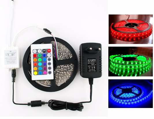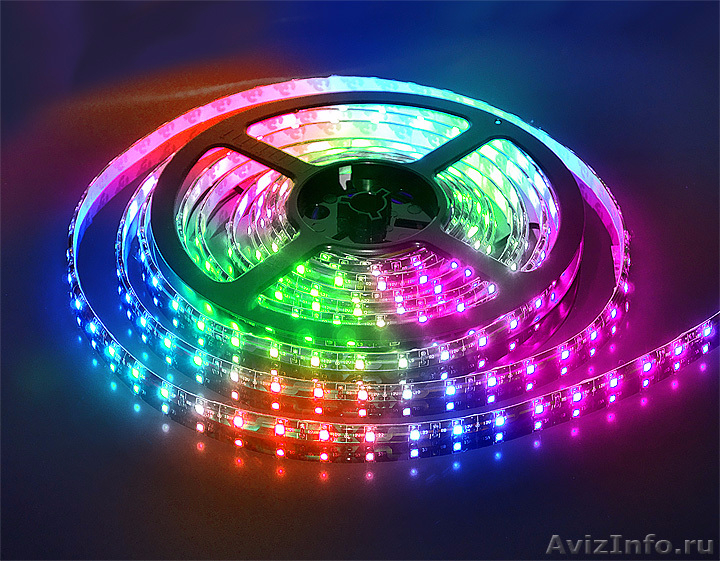 Светодиодные ленты RGB позволяют динамически менять цвет свечения с помощью контроллера и пульта управления, в том числе, получать белый свет. Применяются для художественной подсветки помещений.