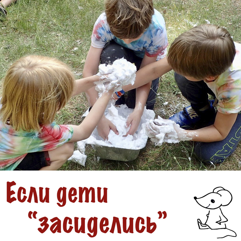 Дома, конечно, куда больше возможностей для переключения и для разных расслабляющих игр. Можно предложить поиграть в кинетический песок или залезть на спорткомплекс, поваляться на кресле-мешке или поиграть с водой, попересыпать рис или фасоль. Можно мять глину и солёное тесто, или возиться с пеной для бритья...