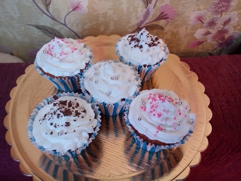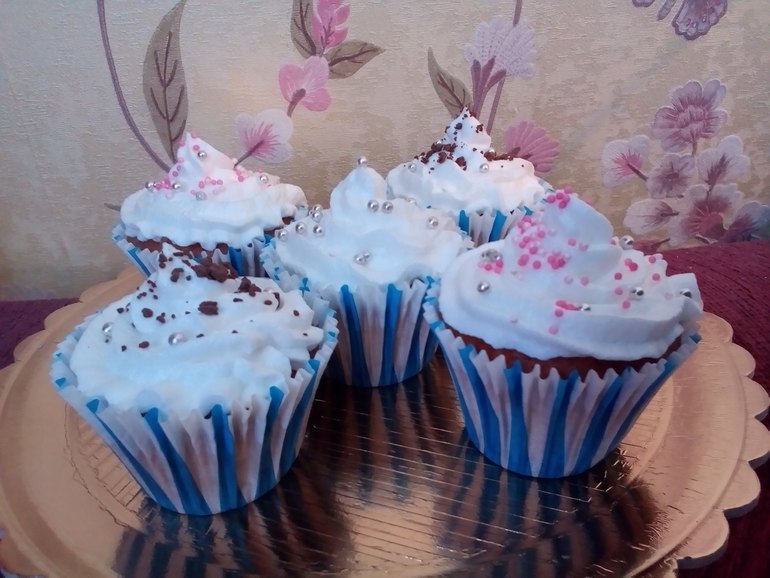 и малюсенький отдельный заказик на просто так ванильные Кап-кейки с вареной сгущенкой, мокрой меренгой и обсыпкой сверху