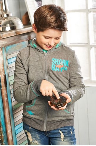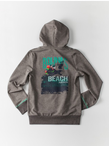 Серый кардиган с капюшоном для мальчика на молнии, с принтом.