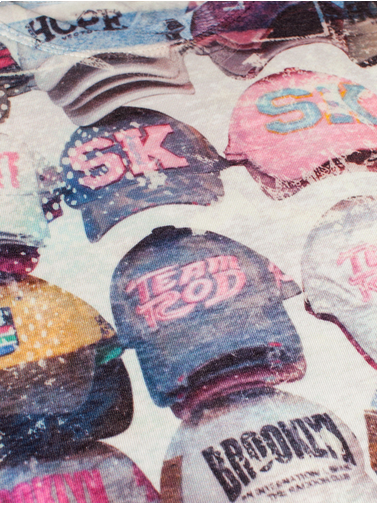 Этот джемпер собрал целую коллекцию бейсбольных кепок. Смотрится прикольно.