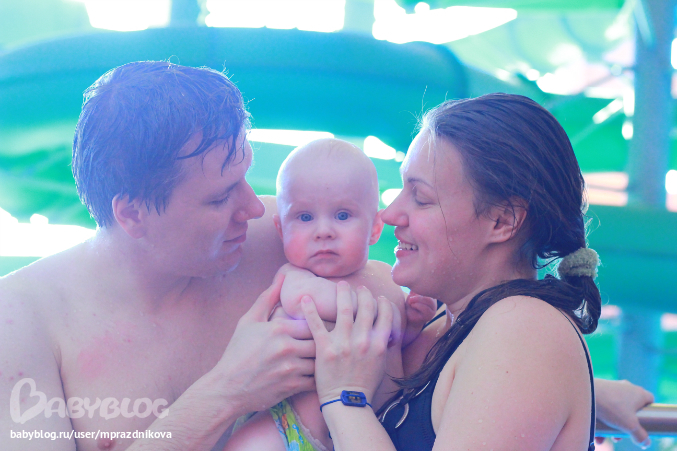 Поехали с мужем, сыном, подругой и её дочуркой - росвесницей Эда. Малыши в детских кругах зависали в джакузи с мужем, плавали в волновом бассейне и лагуне, Эдгара откровенно пёрло))) Меня,соответственно, тоже))) Поехали в виде теста на 2часа40минут, обычно ходили на весь день)) Теперь и с малышнёй можно не боясь на весь день поехать, кушали спокойно в укромных местечках,накрывшись парео, спали в автокреслах и эргорюкзаке. Немного покапризулили в ресторане, так как стульчик детский был только один и без мягкой вставочки. Набрали от испуга много ненужных вещей с собой, но это был,так сказать, тестовый заплыв наших полугодовасиков)