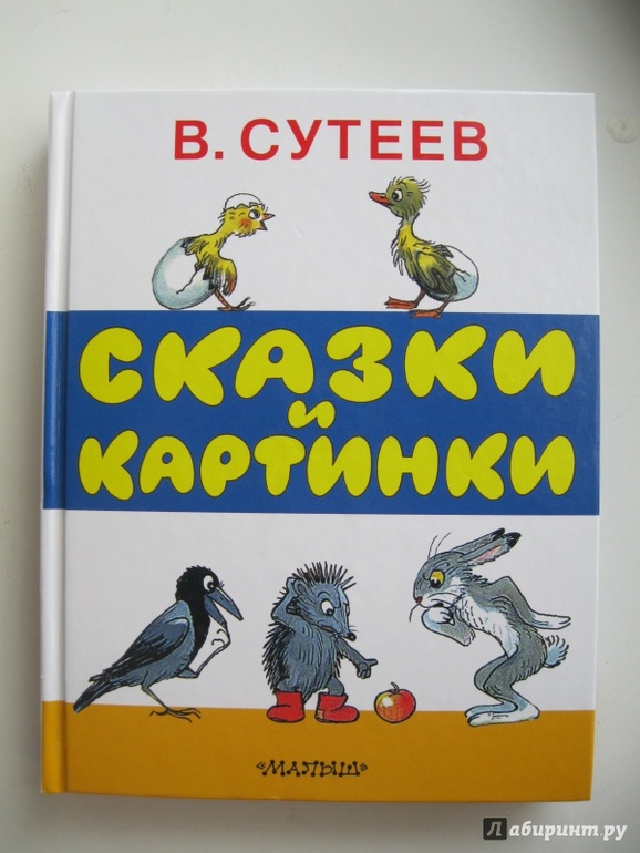 5) Сутеев, В. Сказки и картинки.- М.: Малыш, 2015.- 240 с. Еще один долгоиграющий сборник, с небольшим отрывом уступающий разве что «Кротику». Что здесь можно сказать? В книге содержится прекрасная подборка сказок, рассчитанных на читателя самого разного возраста: от малышковой истории про трех котят до драмы о нераскрашенном петухе. Все тексты изложены в доступной и понятной маленькому читателю форме. Единственный минус - в сборнике отсутствует моя любимая сказка о бегемоте, который боялся прививок.