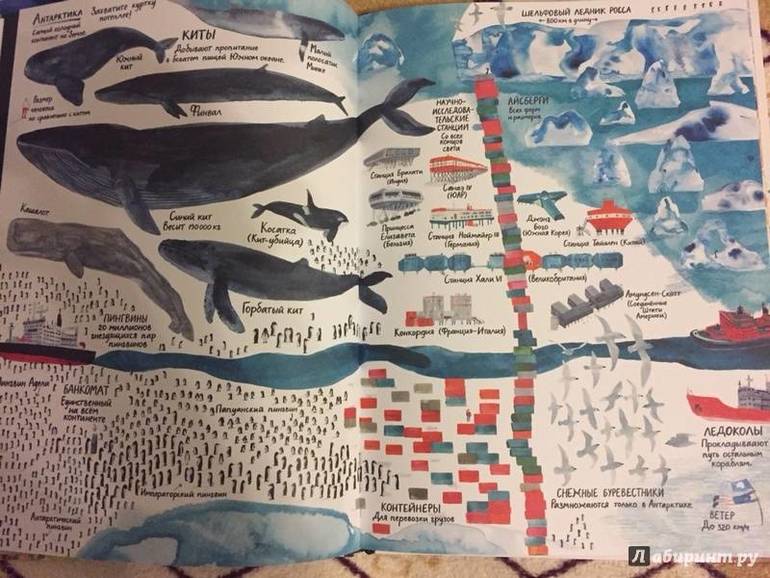6) Марк, М. Много.- М.: Самокат, 2017.- 40 с. Наша первая "географическая" книжка с бездной занимательных подписей. Не знаю, все ли из них содержат правду, но Ян очень любит разглядывать страничку с изображением разноцветных грузовых контейнеров в снегах Антарктиды и иногда зависает на серой и почему-то изображенной ужасно мрачно Москве с ее высотками и залами станций метро.