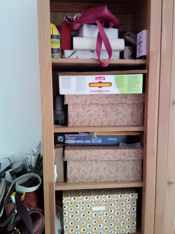 Много стелажей открытых, комоды вместо одного большого шкафа, планируем переезд,и я хочу купить большой шкаф типа Пакс, а пока придумала коробки чтобы убирать туда мелочь