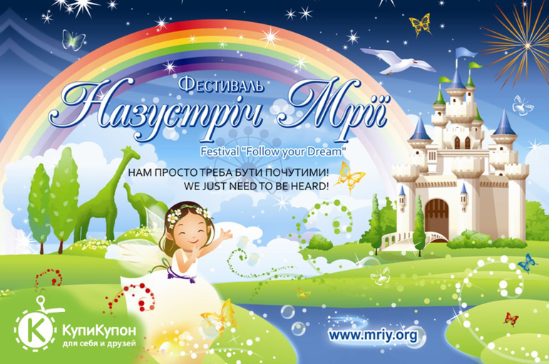 Друзі, підтримайте благодійний фестиваль дитячої творчості "Назустріч мрії! За допомогою інтернет-сервісу КупиКупон всі, хто пожертвує від 50 грн., зможуть отримати запрошення на гала-концерт, який відбудеться 1 червня 2015.