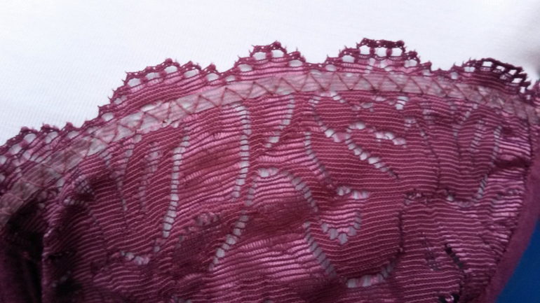 Я просмотрела модели, заказанные ранее, оказывается самые продвинутые еще в июле заказывали цвет марсала. Вот одна из моделей цвета «вишневой пенки» - Roksa L-2381. Эту модель очень сложно было сфотографировать на манекене, т.к. манекен размера 70В, а у меня бюстик 80С. Roksa L-2381 отлично садится по груди, и за счет силиконовой ленты по контуру прилегает к телу. Как всегда безупречные строчки с лицевой стороны, и с изнанки. Несъемные бретели, мягкие чашки.