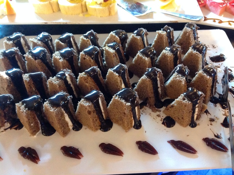 35 - в Кремлине много десертиков выкладывали сразу в отдельные тарелочки но это не мешало нашим "культурным" соотечественникам тут же перекладывать по 4 одинаковых пирожных в свое корыто, пардон тарелку:))