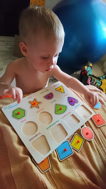 Купила Паше новую игрушку. Думала рано, но дала, а он сам все быстро вставил и заскучал.