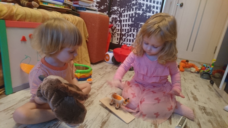 Сегодня мы с Пашей ставили ей спектакль колобок. А потом мы вместе пели, танцевали,играли в паровозики, рисовали.