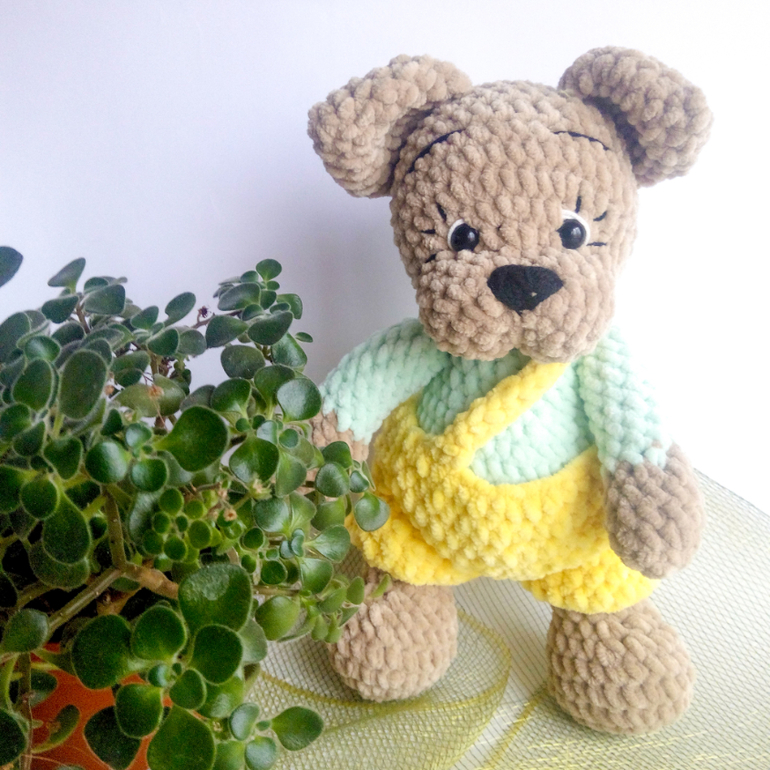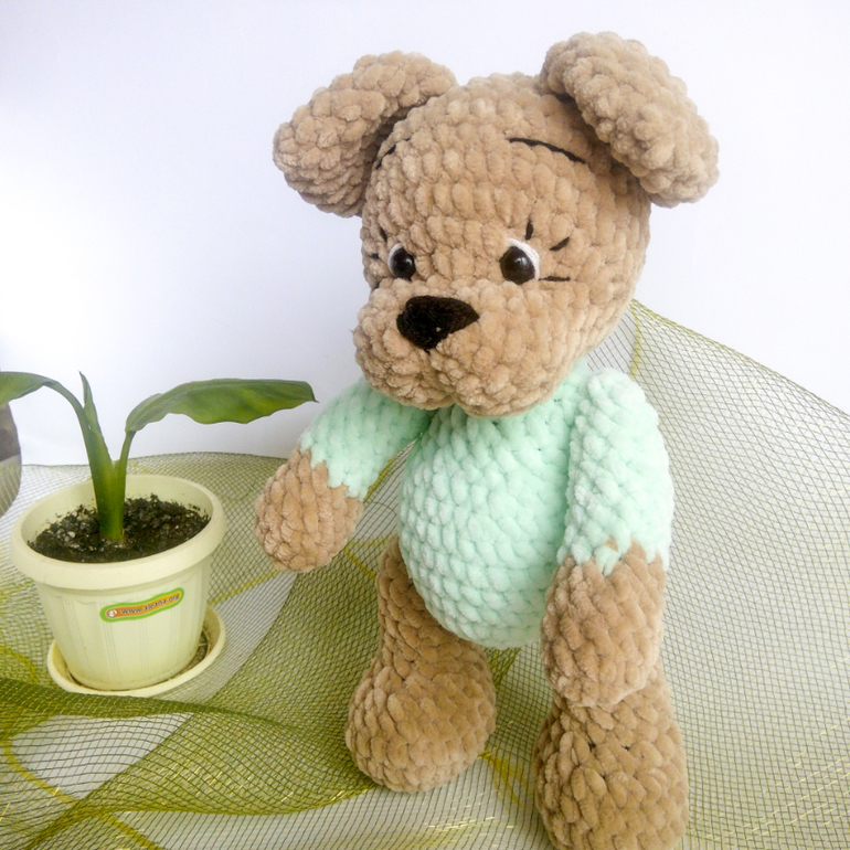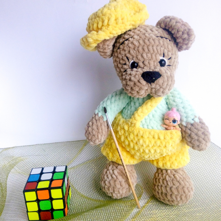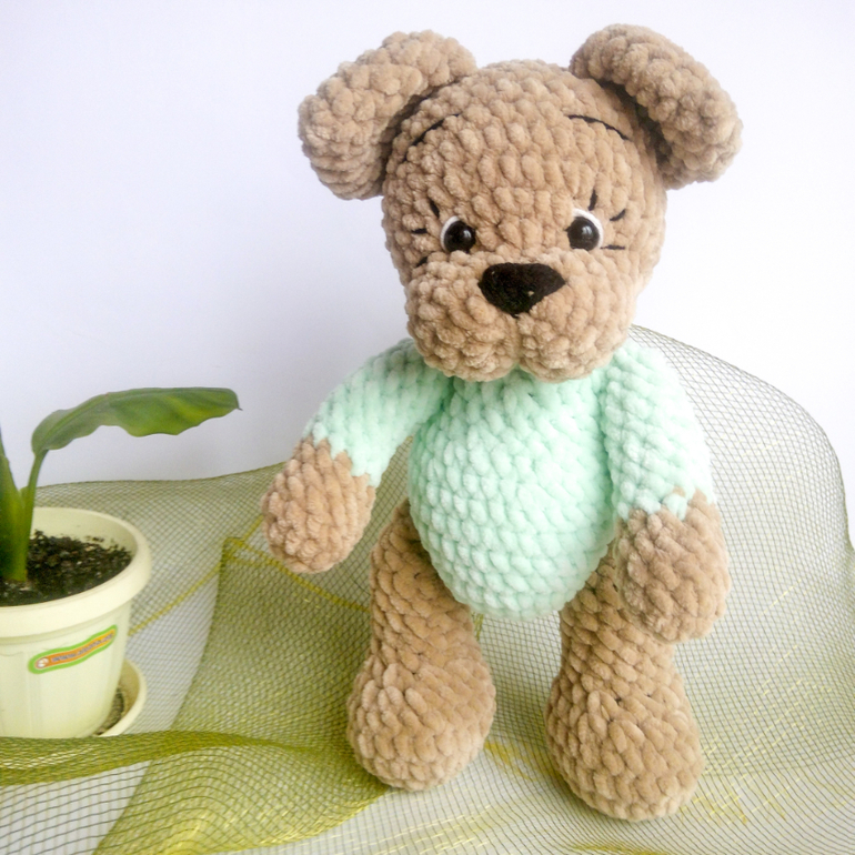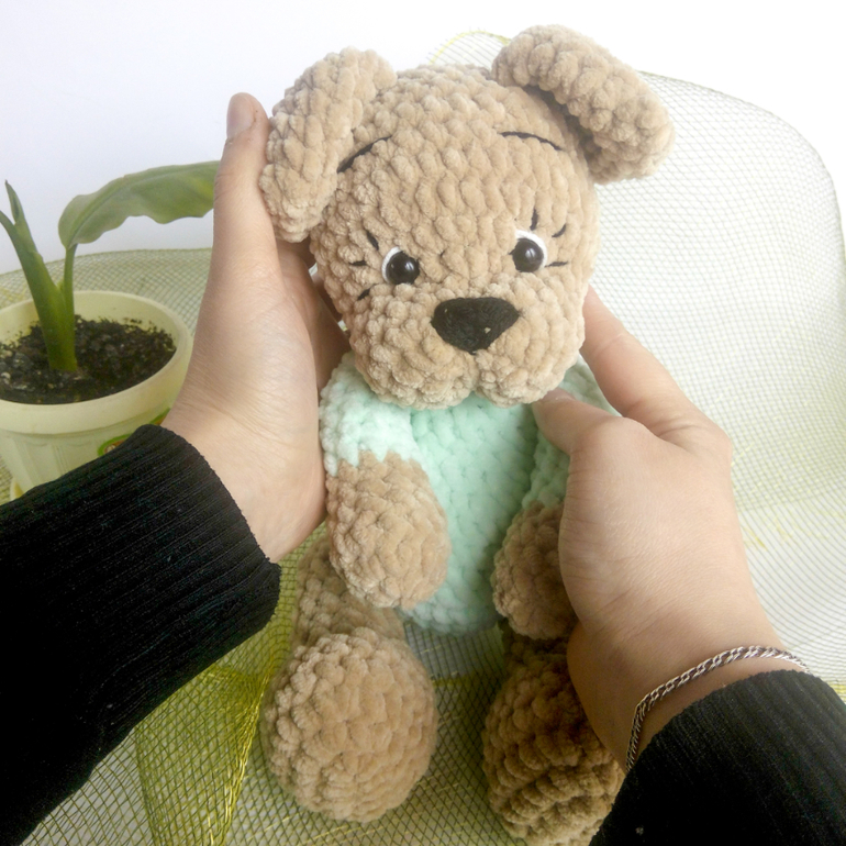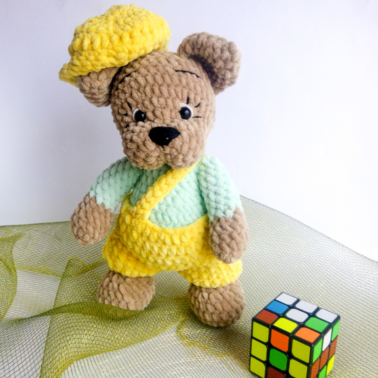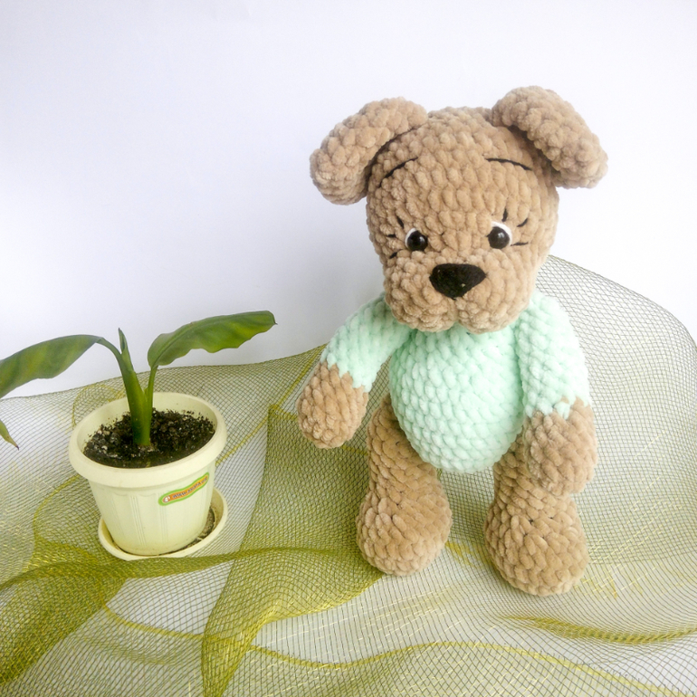 Если умеете вязать, есть подробный мастер-класс по созданию такого щеночка в штанишках и с кепкой.