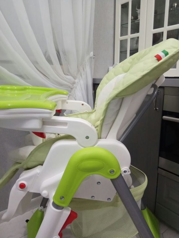 Т.к. на момент покупки малышу было всего 4 месяца, и сидеть еще было нельзя, да и не умел J, то выбор пал на стульчик, у которого опускается спинка.