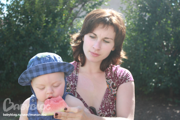 Сегодня вернулись из Киева. Фууххх. Устали. Но довольные. Ребенок вел себя чудесно. Как будто каждый день он встает в 6 утра и едет в аэропорт, летит на Украину, там его тыкают в щечки и умиляются всякие незнакомые люди, как будто совершенно обычное дело для него ездить в автобусе или сидеть за столом, слушая громкого тамаду и музон, и как будто совершенно естесственно потом поехать на чью-то дачу под Киевом и кушать арбузы, плеская ножки в бассейне. Вобщем, Тимон был на высоте. Несмотря на то, что все 4 дня у него непрерывно лезла верхняя пара резцов.