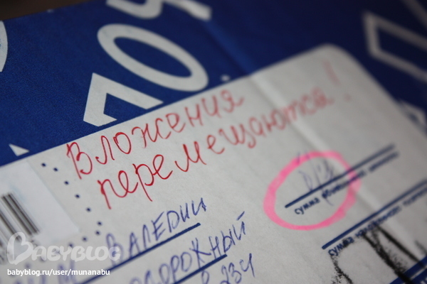 До чего же приятно и интересно придумывать подарок, а потом идти на почту и его отправлять, а потом читать как он дошел до адресата, и конечно, находить в почтовом ящике извещение, брать ребенка в охапку и бежать на почту, забирать посыль, на которой внезапно: