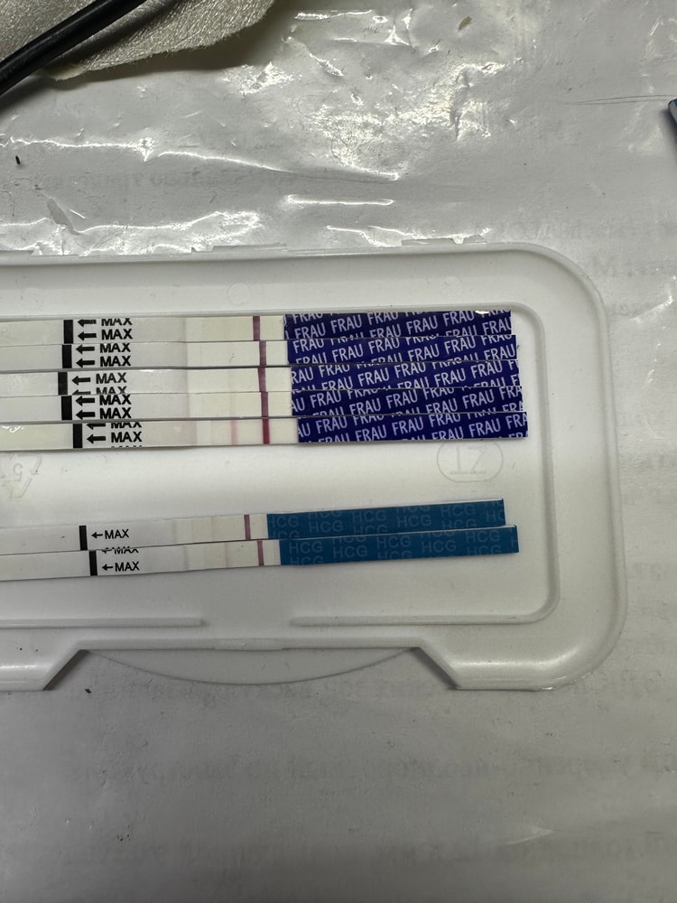 Ярчают полоски фрау? Сделала тест нижний фрау сегодня, не на первый попис. Но переживаю до месячных еще 3 дня, низ живота то тянет, то колит, то бок правый колит. Диагнозы мои меня пугают, эндометриоз , спайки, варикоз малого таза.Хгч вчера сдавала, еще не пришел результат.