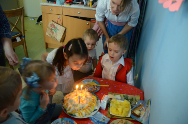 В этом году, как-то не удалось подготовиться и вообще не хотелось, что-то даже не знаю, не могла начать и хоть сесть и плакат нарисовать. Ирина http://www.babyblog.ru/user/info/id828678 (написала нам сценарий) Немного адаптировали его под себя (там Баба Яга, а Тёма боится ее и мы пиратами стали, я тоже) Вот каждый год говорю себе, после ДР -вот на след.год обязательно подготовлюсь на отлично...подходит время к след ДР и руки опускаются). Думала, что мы переедем в Дню Рождения и там территория большая, возможно это отразилось. Ну вот переедем и новоселье организую((((. В итоге загадки позагадывала, в "Колечко-колечко" поиграли, каравай поводили и потанцевали)))). А так в основном дети бесились и разносили всё, а мамы лялякали, что тоже оооочень хорошо, я расслабилась))))Вино вкусное было, надо будет еще купить. Стол я решила делать закусочный. Торт импровизация -корж огромный -опустился в середине и пришлось сделать, что-то типа графских развалин из квадратиков,очень вкусно -мне понравилось. Я торты делаю раз в год -на Тёмин ДР. Свечки задували все по 50 раз. В след раз надо купить "незадувайку". Из-за того, что многие наши друзья вышли в сад или переехали то мы всех позовем в гости на новоселье в выходной, как ремонт доделаем.