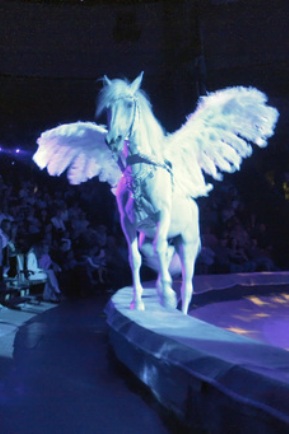 Там в конце сцена "ушла" и вместо нее бассейн выполз, я уже дельнов ждать стала, но их не было и мы ушли потом, может типа моржей было или котиков. Аааа , еще были белые медведи, я просто помню из зоологи, что медведи(белые) не поддаются дрессировке...отнюдь. Еще ледовое шоу было. Всё меняется быстро, никаких пауз и заминок. Одни заканчивают наверху(гимнасты) внизу в темноте уже реквизит к след номеру поставили. А еще у них оркестр свой.
