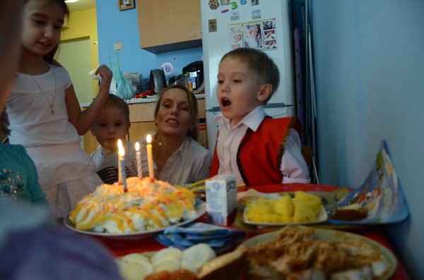 На др была приглашена Юлия с семейством), а она дизайнер, и мы с ней немного поменялись местами, я оформляла, а она фотографировала)))). В итоге, слишком много я уделила готовке, а надо было конкурсы-игры придумать по-больше или аниматора нанять))). учту на будущее). Итак плакат, готов был в последний момент, благодаря Юльчику, она похвалила меня за надпись))). А еще кейкпопсы я намутила- хорошая вещь, есть удобно, ровно на один укусик.