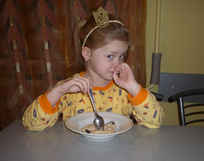 Утро..Сидим за столом завтракаем...