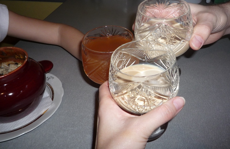 И ,сказав , что гордимся своей девочкой, дзынькались...Яна соком, а мы с супругом пригубили бейлиса