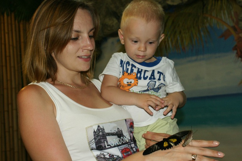 фотки о насВ Ялте мы посетили сад живых бабочек. Бабочки летали вокруг, садились нам на руки, правда Мишка одну большую бабочку загубил, схватил за крылья. можно было пофотографироваться. Несколько удачных фото сделала.