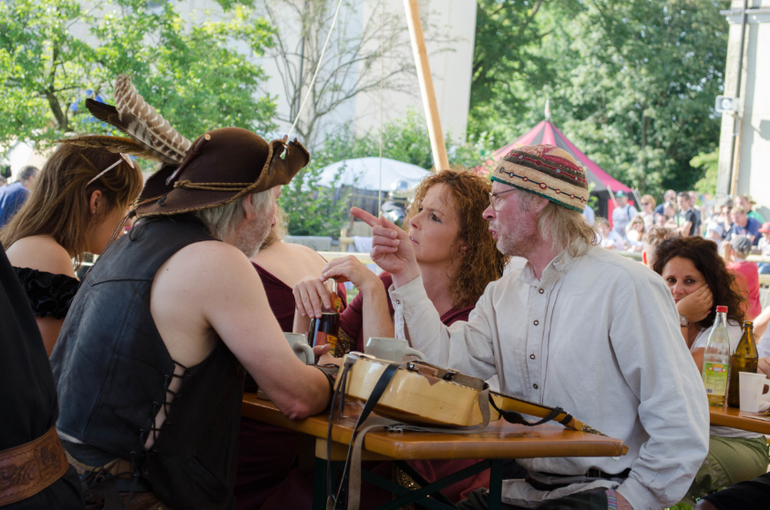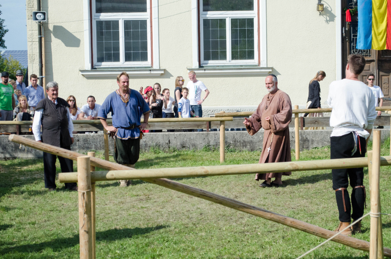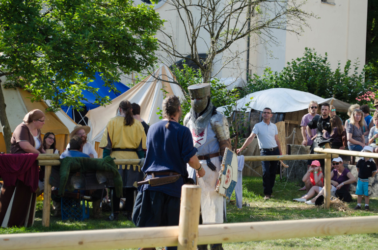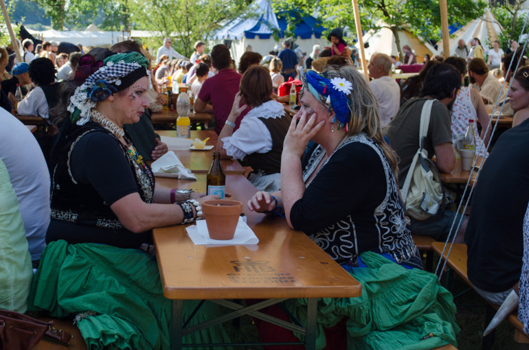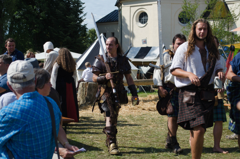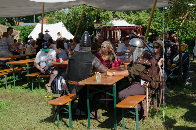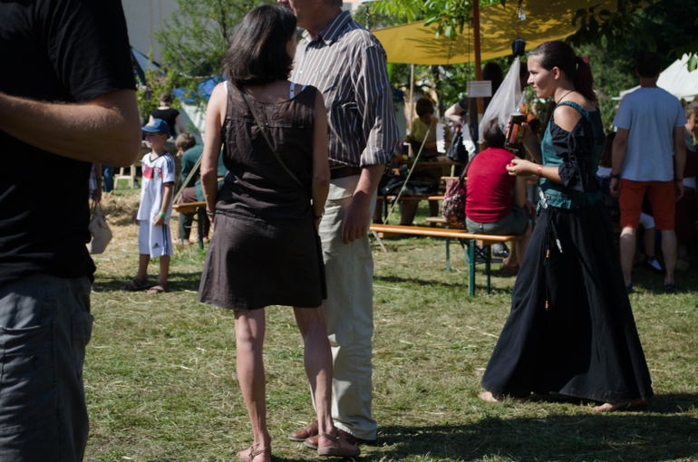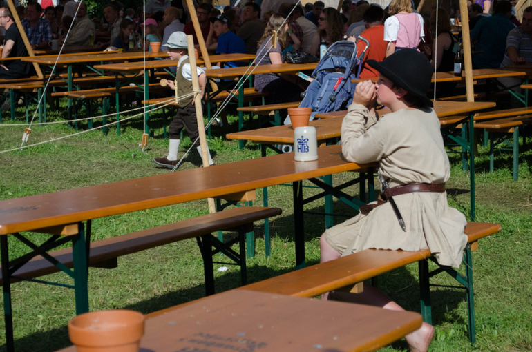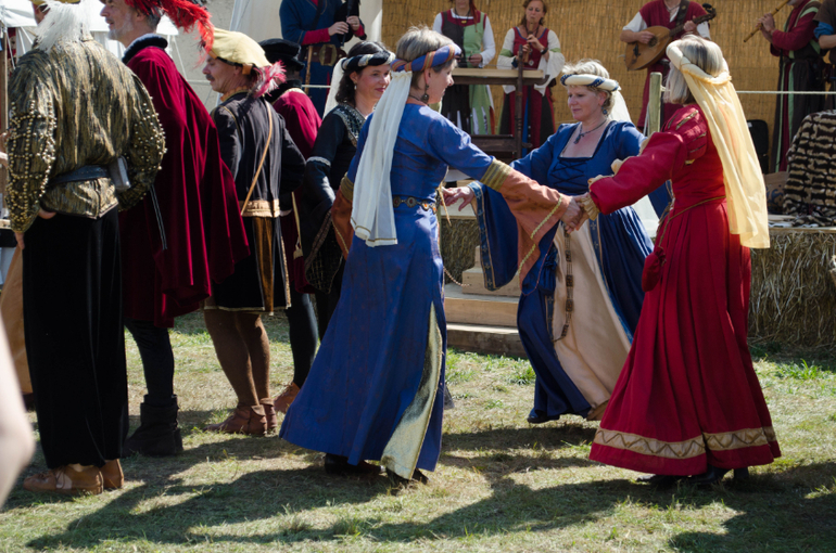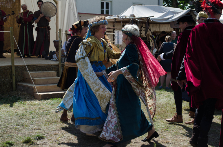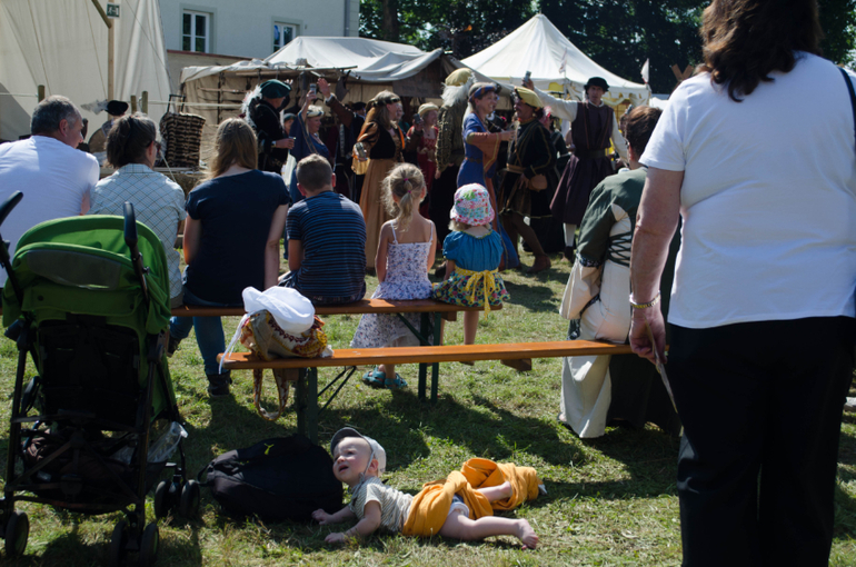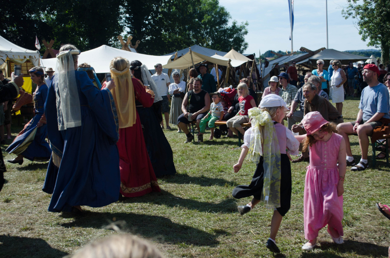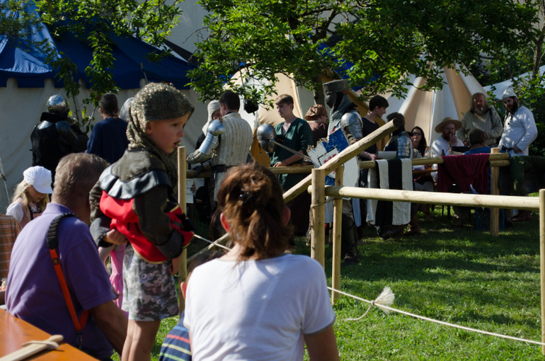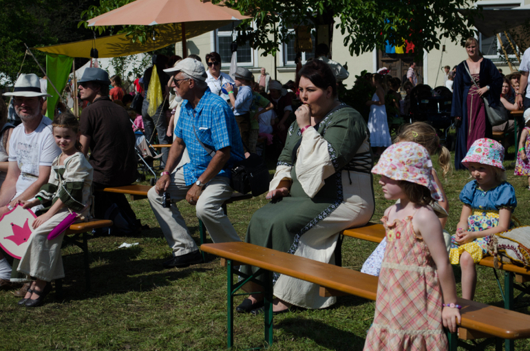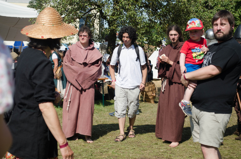 Когда мы пришли, заканчивался очередной рыцарский турнир и начинались танцы. На входе детей зазывал к себе сказитель, но они заартачились, сказали, что хотят есть - в общем, духовная пища началась для нас позже: