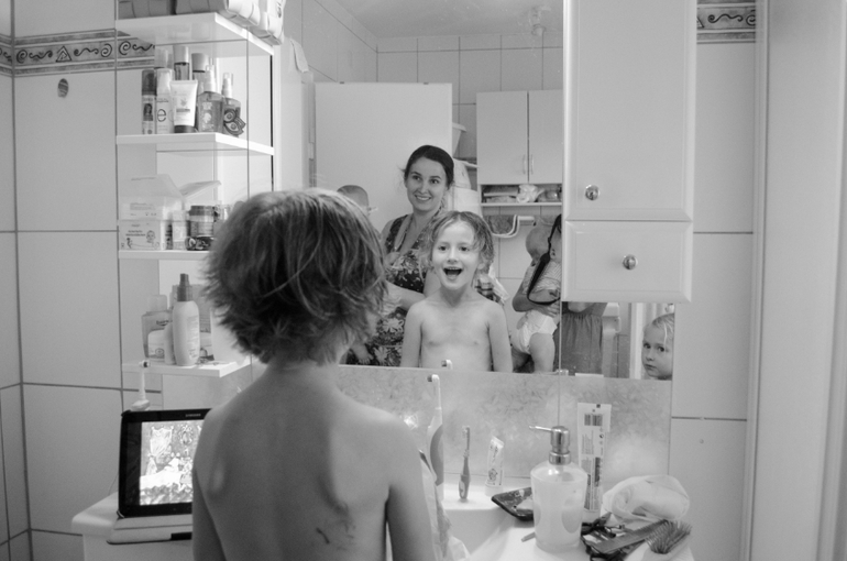 Сама, ага. Наверное, потому, что я постриглась)А дети мультик смотрят, переживают))