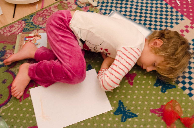 Дениза несколько дней подряд ставила эксперимент по незасыпанию с целью играть всю ночь. Я эксперименту препятствовала вплоть до последней пятницы. В половину одиннадцатого зашла в комнату и нашла ее в таком виде: