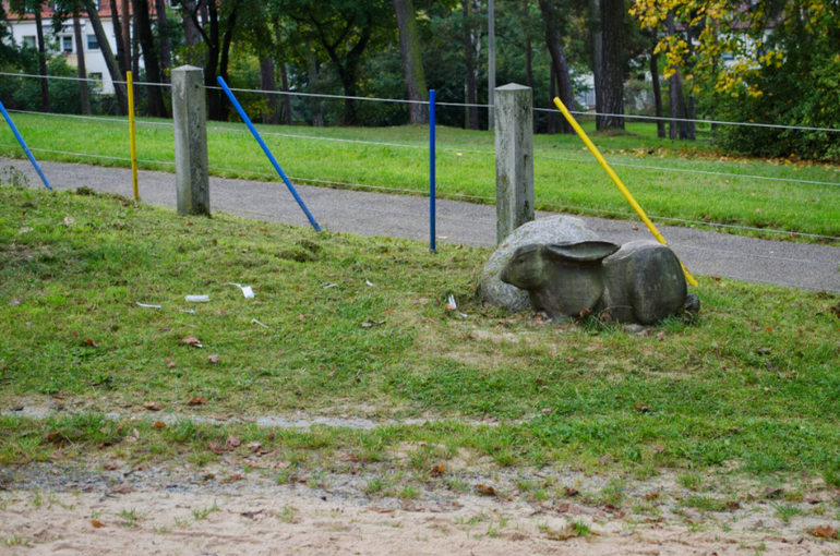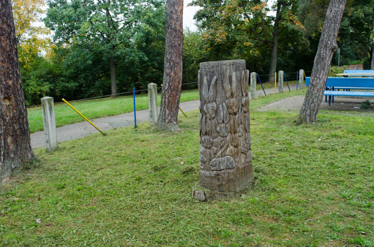 Прежде всего нужно сказать, что мы живем на раёне, название которого буквально переводится как "заячий горб". Раён представляет из себя холм с двумя макушками: одна выше, другая, соответственно, ниже. Мы живем на той, что ниже, а площадка, которая сегодня на повестке дня, расположена на той, что выше. С названием холма связано большое количество зайцев на площадке.