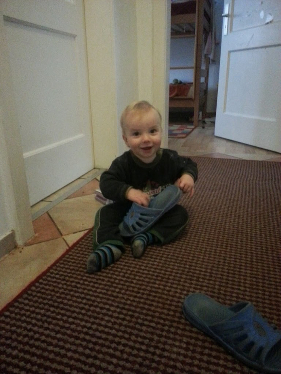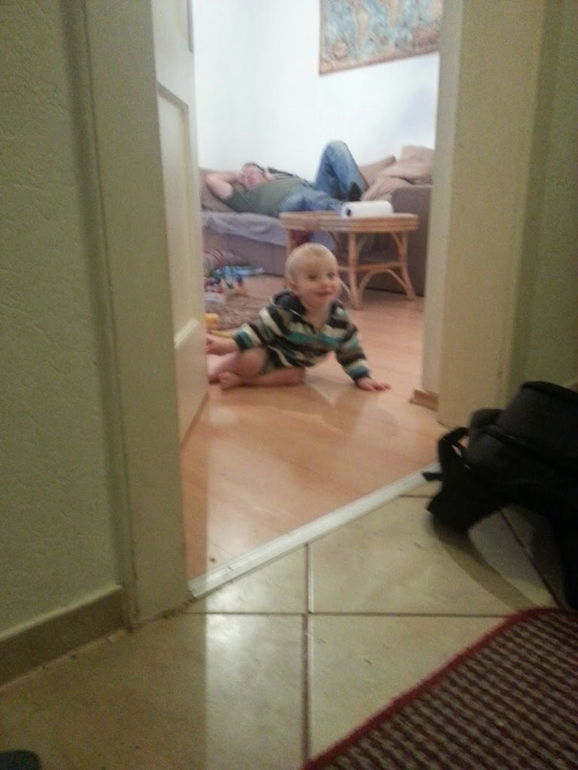 12.30. Пока я фотографирую воробьев, младенец подает голос и, уже весь несчастный, выползает из спальни: