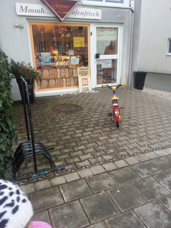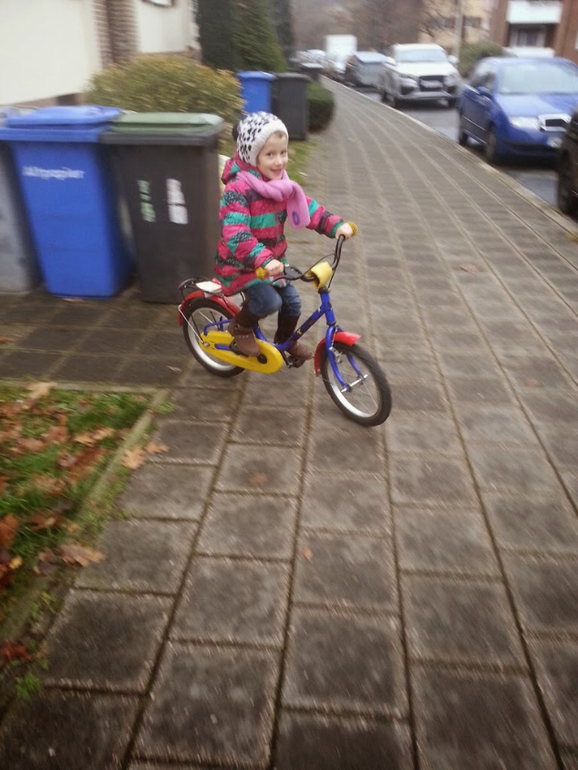 Хочет ехать в садик на велосипеде, как всегда. Я бегу следом, но лучше так, чем когда Дениза не хочет идти за руку и ползет где-то сзади: