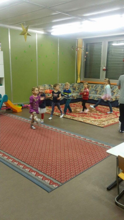 16.30. Папа везет Денизу в театральную студию в русском центре, малыш едет за компанию: