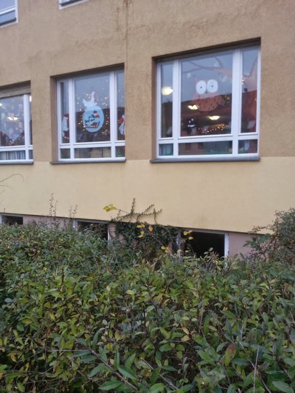 Окна группы с фасада. Внутри уже повесили гирлянды: