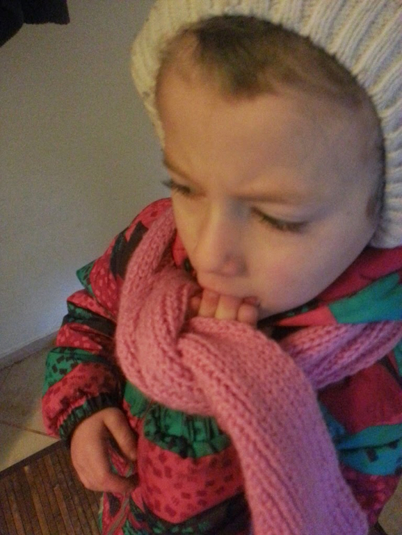 Прошу Денизу вытащить пальцы изо рта, она говорит, что поправляет шарф, потому что он ей "делает шов". Такая чувствительность к одежде появилась недавно, раньше не было: