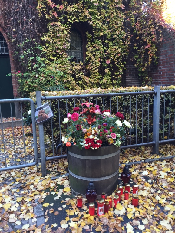 Бгг) это "музейный" медведь. Жил на специальном острове, возле музея. Это прям возле нашего дома, в парке. Вот свечки ему люди приносят.