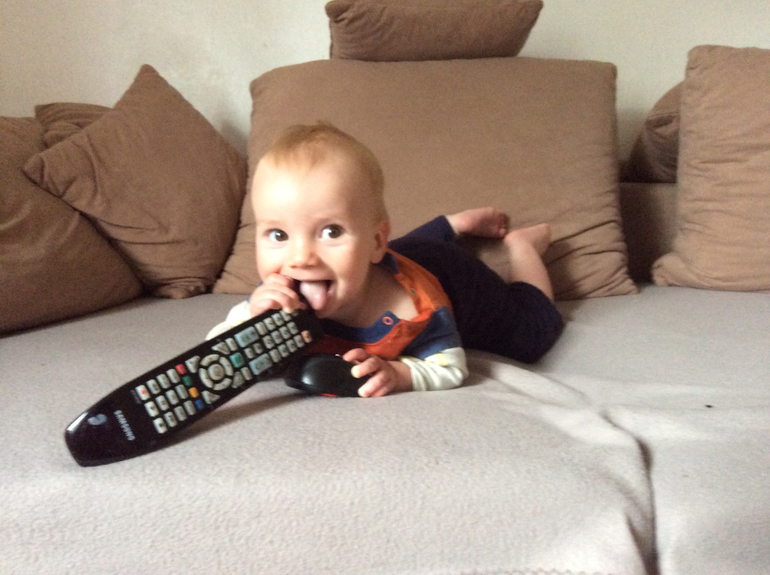 Чтобы не забыть, какими бывают почти годовалые дети: 79 см, 10300 - это мы к врачу вчера сходили. Шесть зубов. Может сделать один шажок без поддержки, но сам не ходит, зато очень активно везде ползает и забирается на поверхности, вертикальные и горизонтальные. Показывает "на головку сели" и очень собой доволен.
