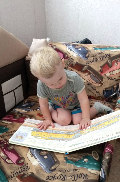 Сын берёт её по несколько раз на дню и сегодня заметила, что не просто листает, а как будто читает (первые разы смотрели вместе и я читала, что написано под клапанами). Слышу, комментирует: "пыти-пыти-пыти":)