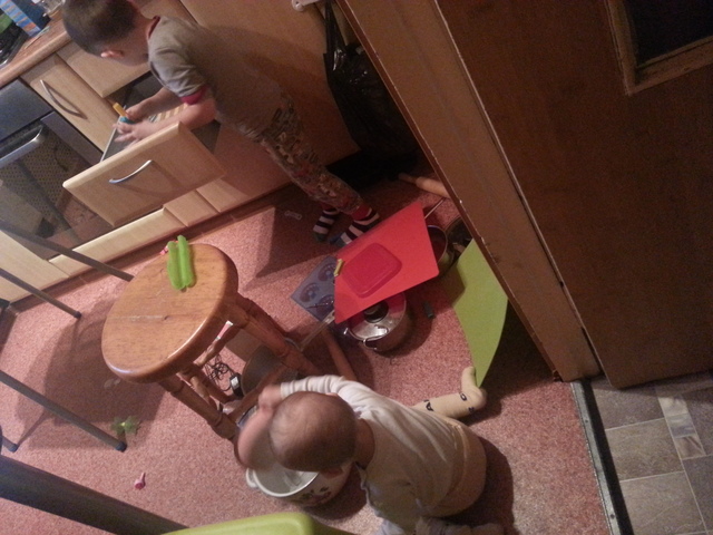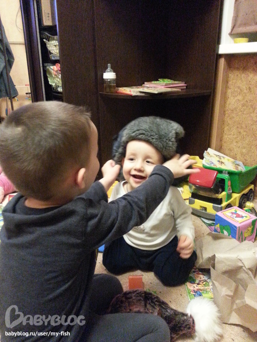 А вообще потихоньку начались совместные игры, причём Тёмка выступает инициатором, еще помогает Вадимке в мелких хулиганствах.